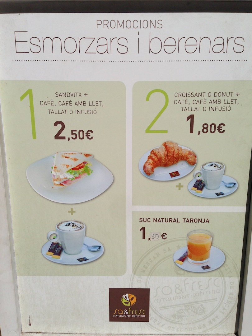 This is the motto of the nicest gym in Barcelona, the Equinox of Spain. With hundreds of classes to chose from, state of the art equipment and well informed instructors, one feels at right at home. Since everything was “closed on Sunday”and I couldn’t shop for groceries, I would enjoy my Monday morning breakfast at the gym.